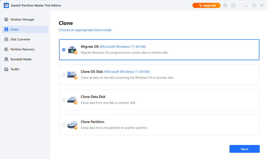 为了确保迁移的系统能够正常启动,迁移操作系统功能将传输系统和启动分区中的所有文件。通常,启动分区是C盘,因此传输将包括C盘中的所有文件。