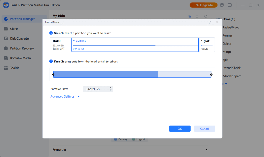 在要操作的分区上,可能有一些文件被其他程序占用。为了确保操作成功,我们建议您在调整分区大小之前关闭所有不必要的软件。否则,易我分区大师将检测到被其他软件锁定的分区,并要求重新启动以在引导模式下调整分区大小。